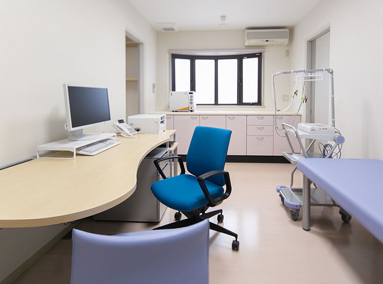 患者様がリアルタイムで超音波の画像が見られるように、壁掛けのテレビを置きました。